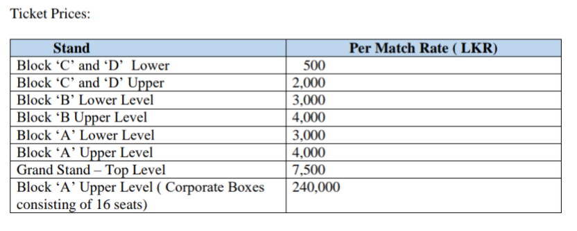 ඒ, අනුව ශ්‍රී ලංකා ක්‍රිකට් ආයතන නිවේදනය කරන්නේ www.srilankacricket.lk වෙබ් අඩවියට පිවිසීමෙන් ටිකට්පත් මාර්ග ගත ක්‍රමය ඔස්සේ මිල දී ගත හැකි බවයි.