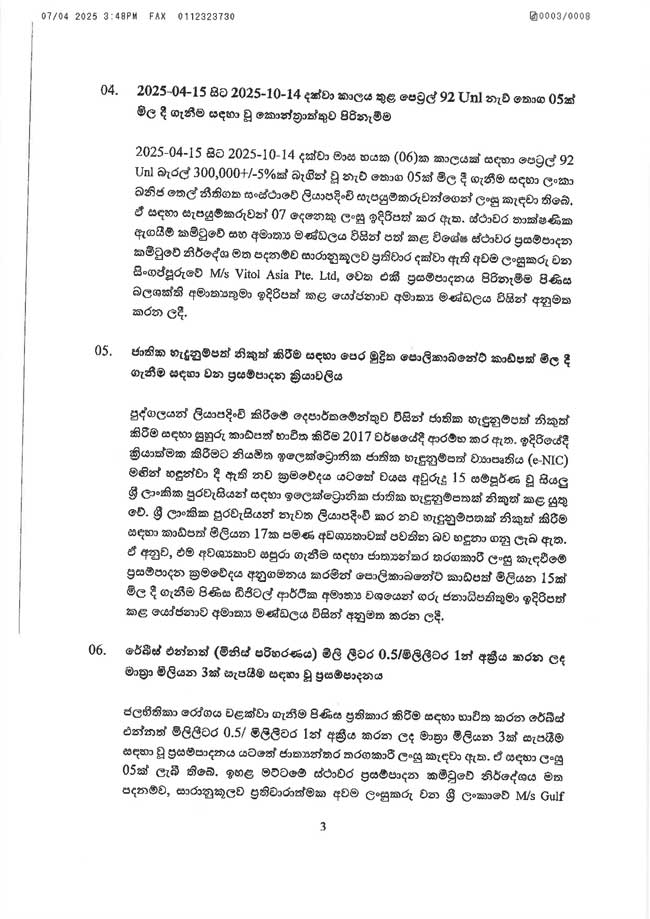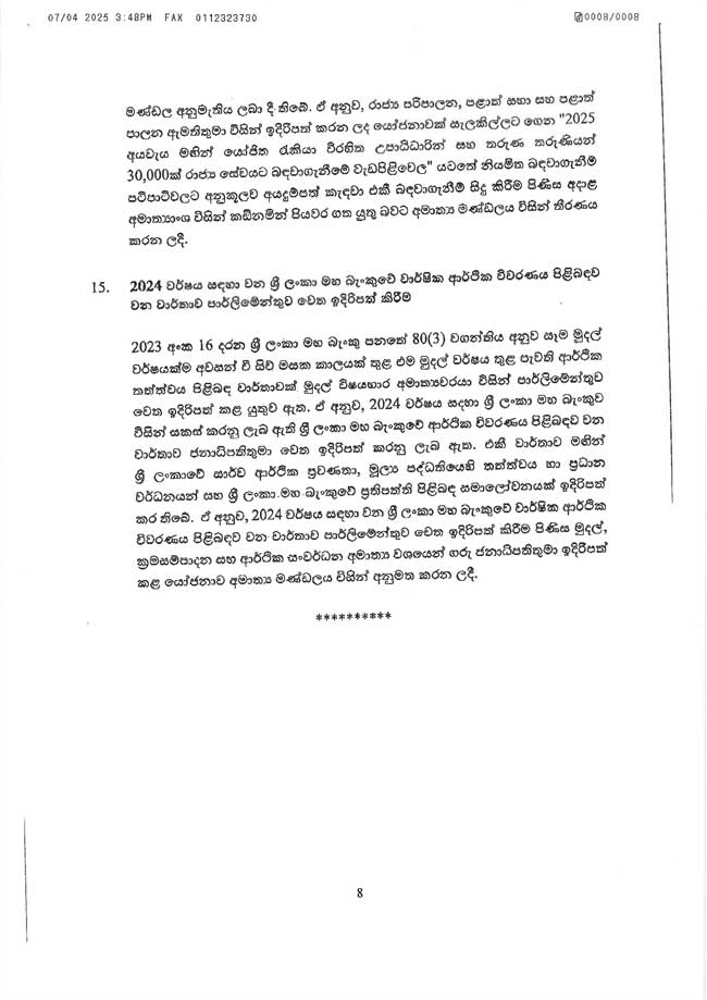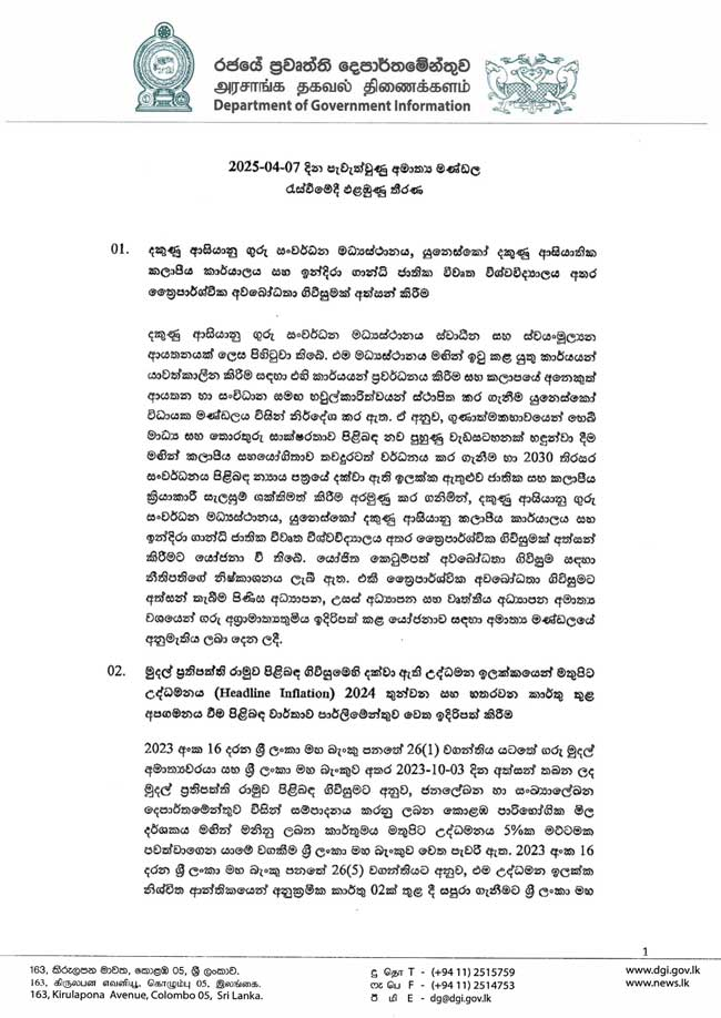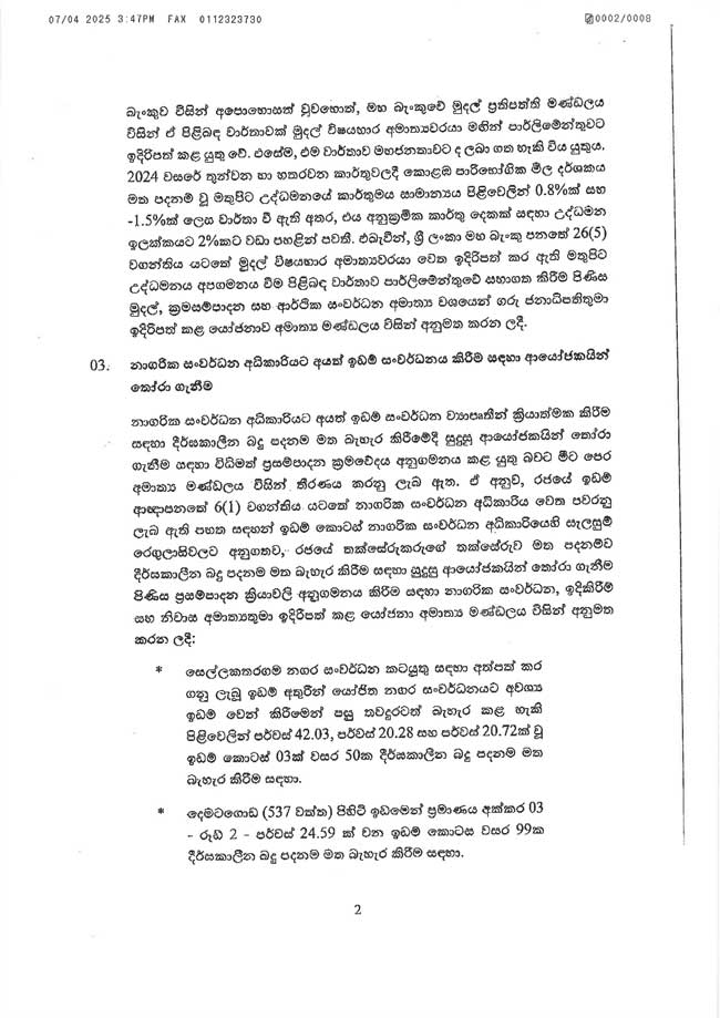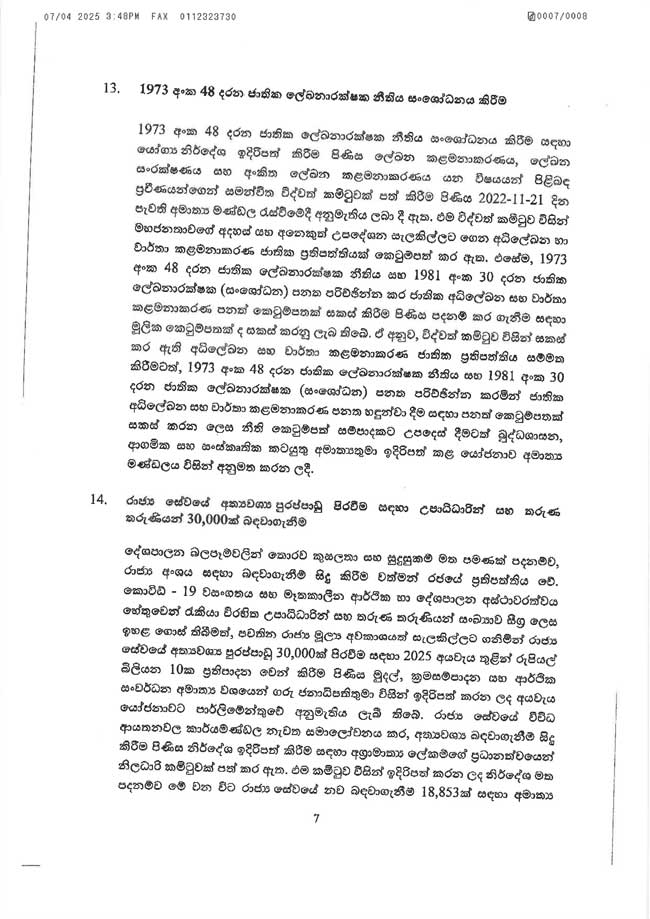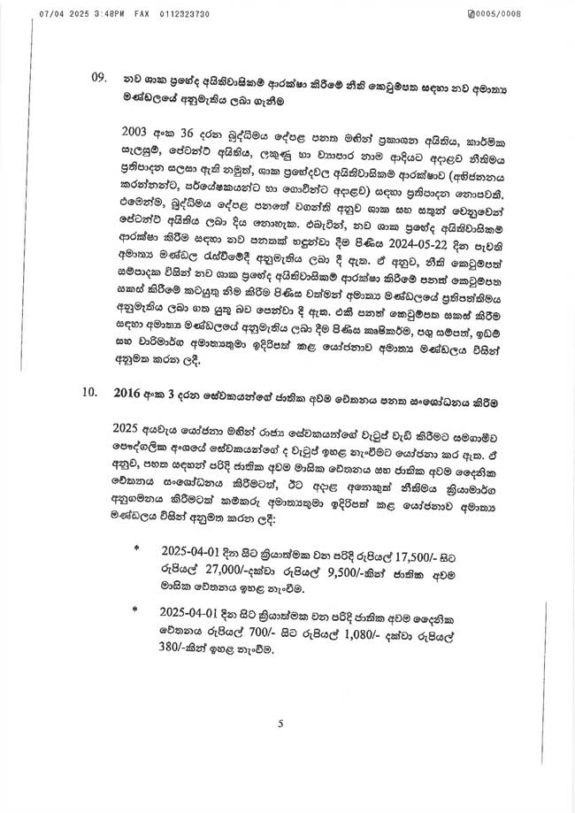 - 2025.04.01 දින සිට ක්රියාත්මක වන පරිදි රුපියල් 17,500 සිට රුපියල් 27,000 දක්වා රුපියල් 9,500කින් ජාතික අවම මාසික වේතනය ඉහළ නැංවීම.