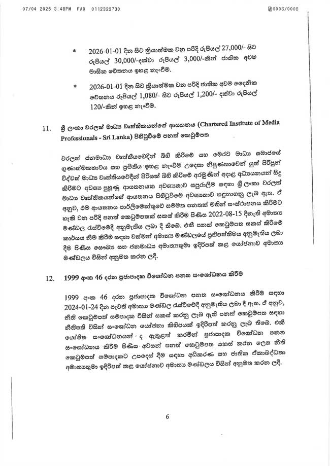 *2026.01.01 දින සිට ක්රියාත්මක වන පරිදි ජාතික අවම දෛනික වේතනය රුපියල් 1,080 සිට රුපියල් 1,200 දක්වා රුපියල් 120කින් ඉහළ නැංවීම.