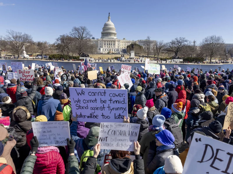 අමෙරිකානු ජනාධිපති ඩොනල්ඩ් ට්රම්ප්ගේ ක්රියාවන්ට විරෝධය පළ කරමින් එරට දහස් ගණනක ජනතාව වීදි බැස විරෝධතාවල නිරත වනවා.