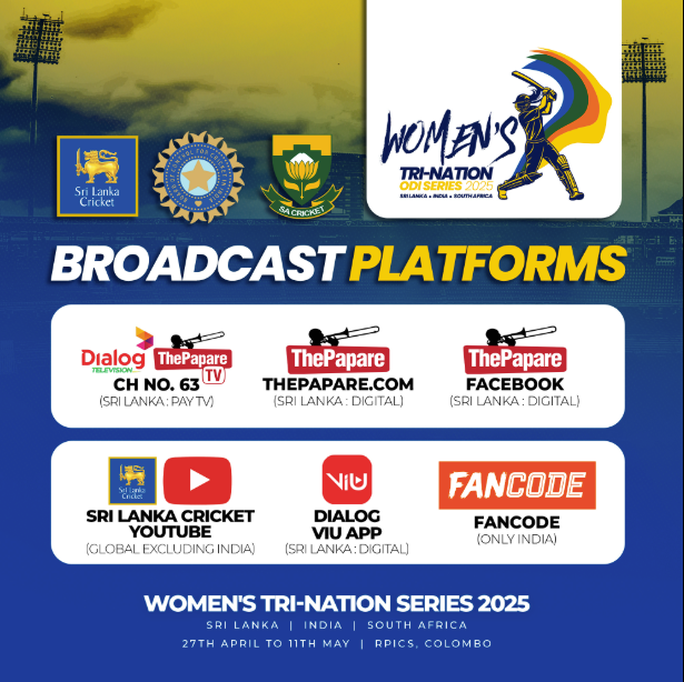 ශ්රී ලංකාව, ඉන්දියාව සහ දකුණු අප්රිකාව සහභාගී වන කාන්තා තුන්කොන් එක්දින තරගාවලියට 2025 අප්රේල් 27 වන දින ආරම්භ වනවා.