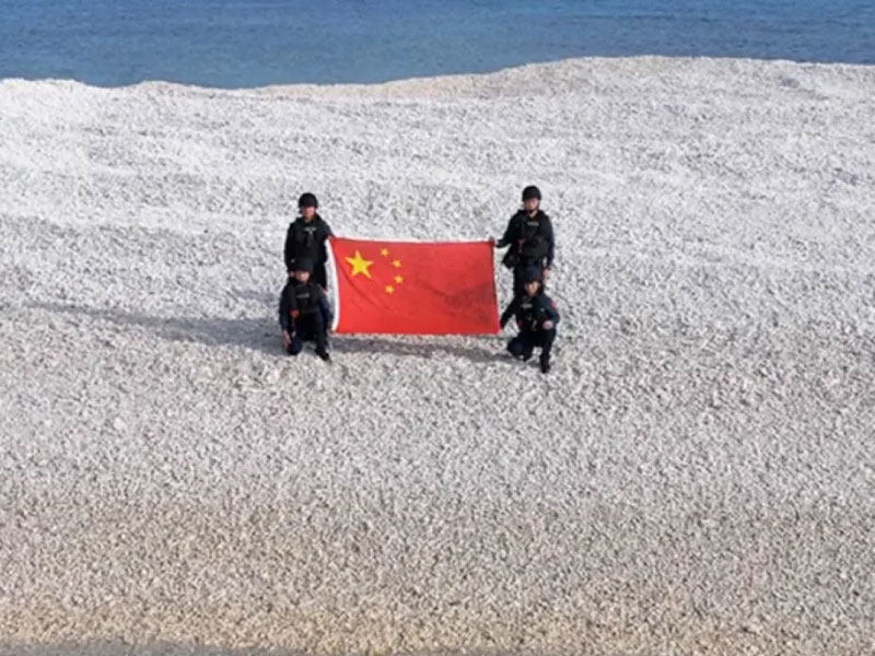 දකුණු චීන මුහුදේ ජනාවාස නොවූ ගල්පරයක් මත චීනය “සාගර පාලනය ක්රියාත්මක කර ඇති අතර එහි ස්වෛරී අධිකාරිය තහවුරු කර ඇති” බව Japan Times වාර්තාවක දැක්වෙනවා.