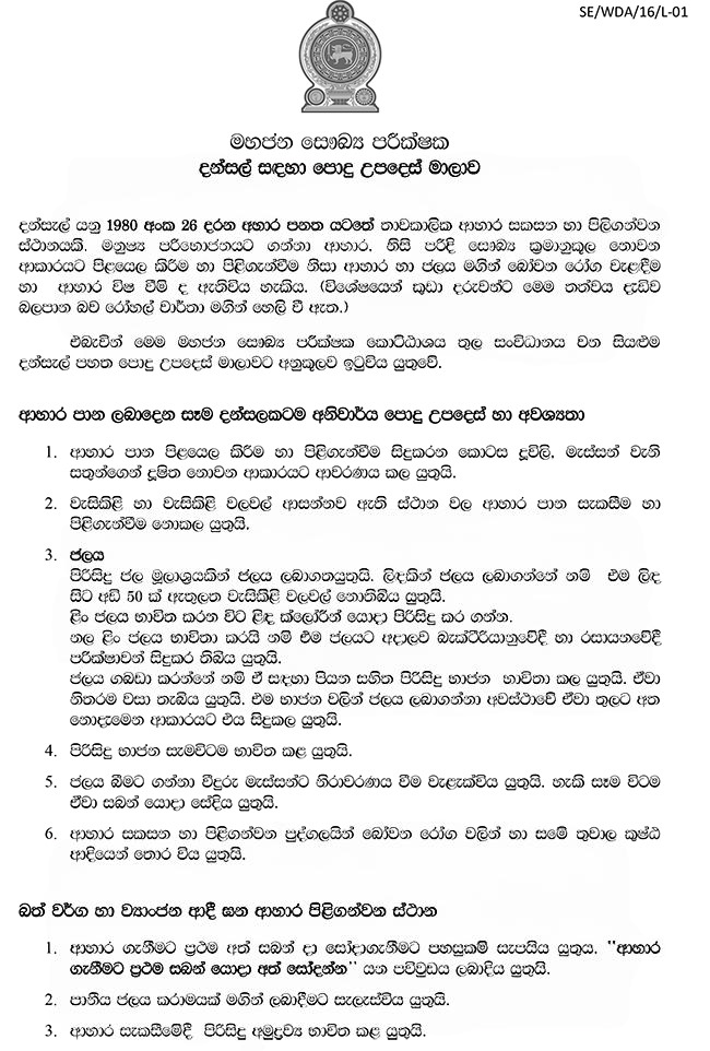 එබැවින් මහජන සෞඛ්‍ය පරීක්ෂක කොට්ඨාසය තුළසංවිධානය වන සියලුම දන්සැල් පහත පොදු උපදෙස් මාලාවට අනුකූලව ඉටුවිය යුතු බව මහජන සෞඛ්‍ය පාරීක්ෂක කාර්යාලය නිවේදනය කරනවා.