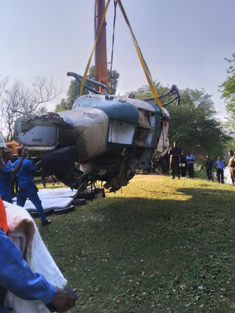 මාදුරුඔය ජලාශයට කඩා වැටුණු හෙලිකොප්ටරය ගොඩගත් මෙහෙයුම (PHOTOS)