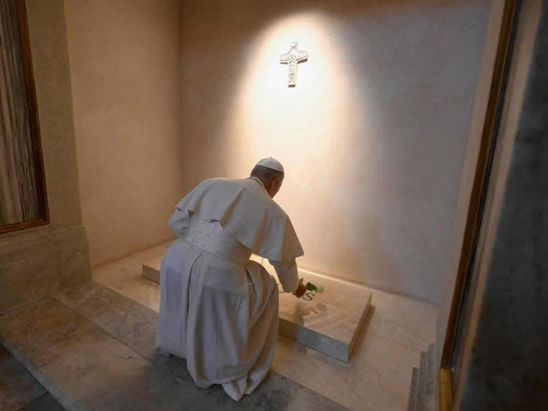 සිය පළමු සංචාරය අවසන් කරමින් නැවත වතිකානය වෙත ආපසු යන අතරතුරදී උන්වහන්සේ ෆ්‍රැන්සිස් පාප් වහන්සේගේ සොහොන් ගෙය සහ සාලස් පොපුලි රොමානි නම් කන්‍යා මරිය තුමියගේ පිළිරුව වෙත ගොස් යාච්ඤා මෙහෙයන්හි නිරත වී ඇති බවයි විදෙස් මාධ්‍ය වාර්තා කළේ.