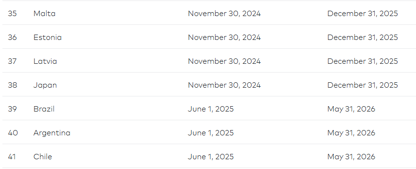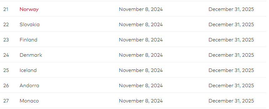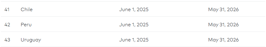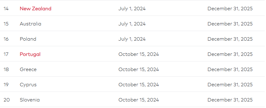 අදාළ අවස්ථාව හිමිවන සම්පූර්ණ රටවල් ලැයිස්තුව පහත පරිදි වනවා…