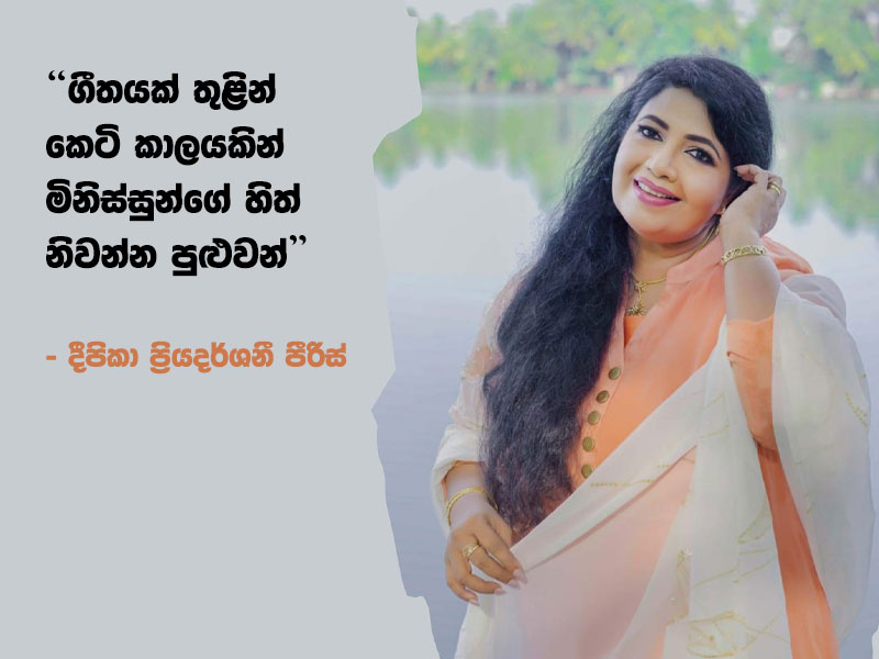 සංගීතය යනු රසික සිත් සතන් සනසාලන අපූර්ව විශ්ව භාෂාවකි. එසේ මිනිසුන්ගේ සිත් පිනවීම සඳහා වරම් ලැබීමම වාසනාවකි. දීපිකාගේ සංගීත ගමනේ අලුත්ම තොරතුරු ඇය මෙසේ පැවසුවාය.