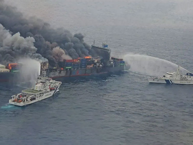 සිංගප්පූරු ධජය සහිත ව යාත්රා කළ භාණ්ඩ ප්රවාහන නෞකාවක් හදිසියේ ගිනි ගැනීමකට ලක්වීමෙන් මේ වනවිට එහි කාර්යය මණ්ඩලයේ සිව්දෙනෙකු අතුරුදන් බවත්, එම ගින්න නිවා දැමීමේ කටයුතු තවමත් ඉන්දීය වෙරළාරක්ෂක බලකායේ මැදිහත් වීමෙන් සිදු වන බවත් විදෙස් මාධ්ය වාර්තා කරනවා.