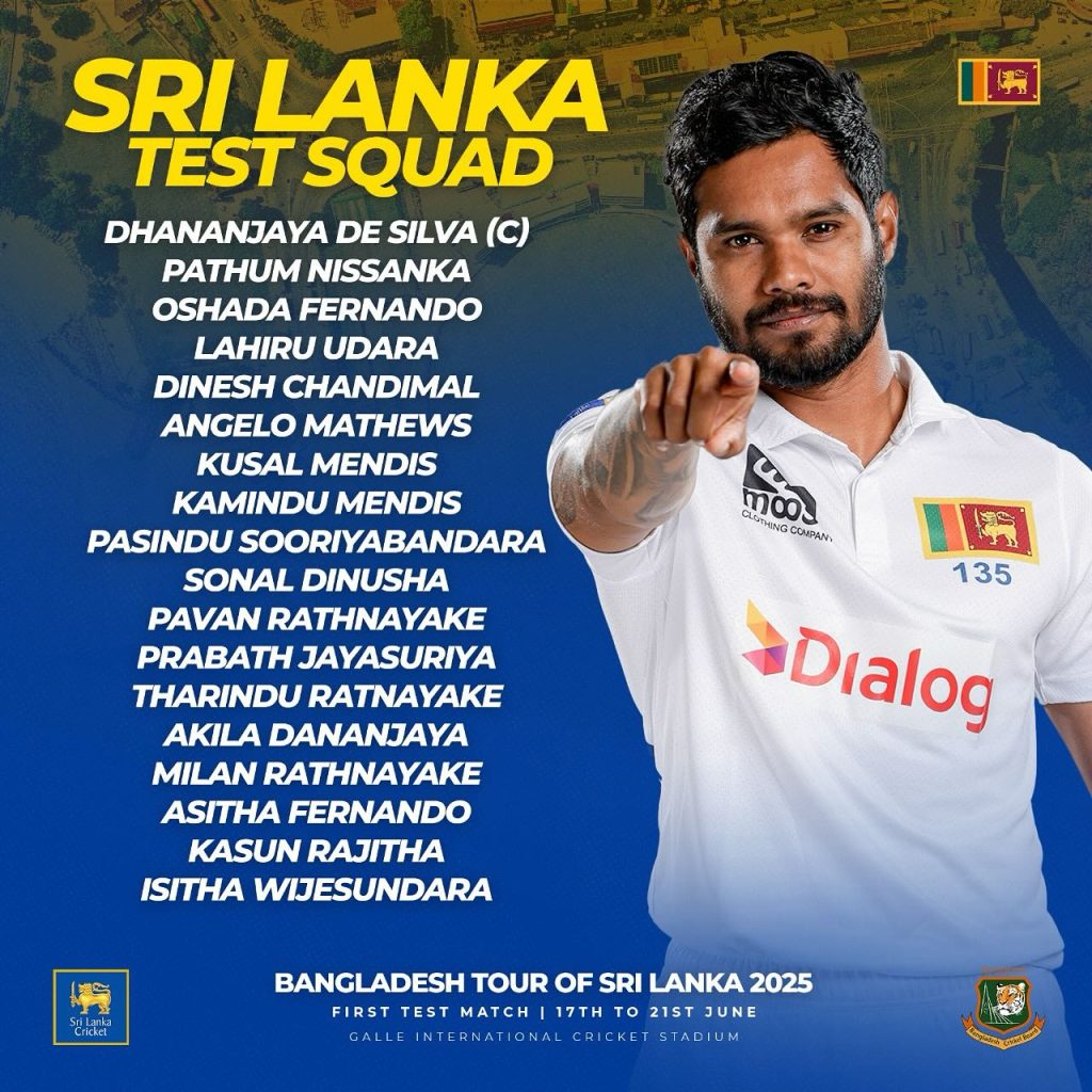 සංචාරක බංග්ලාදේශ කණ්ඩායම සමඟ ටෙස්ට් තරගාවලියට එක්වන ශ්රී ලංකා සංචිතය මේ වනවිට නිල වශයෙන් ප්රකාශයට පත්කර තිබෙනවා.