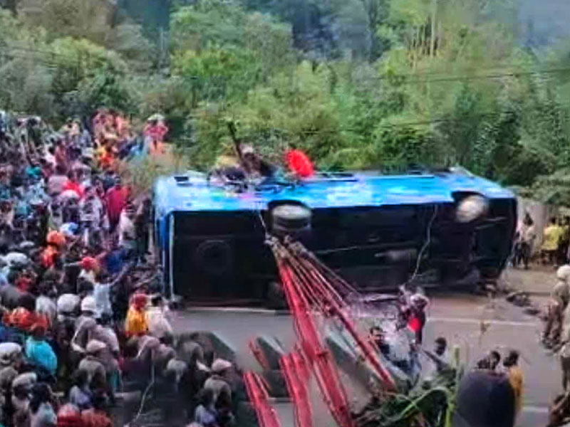 මෙලෙස අනතුරට ලක්ව ඇත්තේ බදුල්ල සිට අනුරාධපුරය දක්වා වන්දනාකරුවන් පිරිසක් රැගෙන ගිය බස් රථයක්.