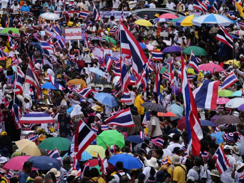 තායිලන්තයේ අගනුවර බැංකොක් නගරය මධ්යයේදී අති විශාල විරෝධතාවයක් පැවැත්වුණා.
