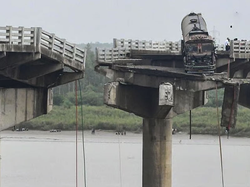 ඉන්දියාවේ ගුජරාට් ප්රාන්තයේ පාළමක් කඩාවැටීමෙන් 10 දෙනෙකු ජීවිතක්ෂයට පත්ව තිබෙනවා.
