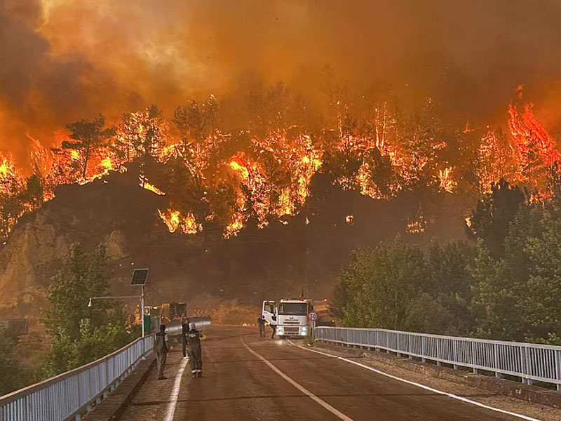 දැඩි වියලි කාලගුණය හේතුවෙන්, තුර්කියේ ළැව් ගිනි ව්යාප්ත වෙමින් පවතිනවා.