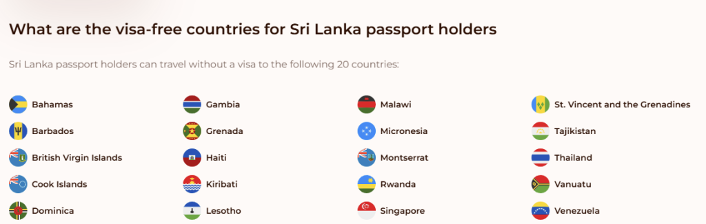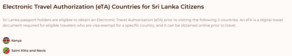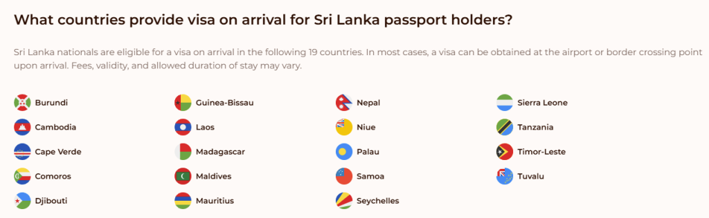 රටවල් 42ක් සඳහා ශ්රී ලාංකිකයන්ට වීසා අවශ්යතා නොමැතිව, Visa on Arrival හෝ ඉලෙක්ට්රොනික වීසා අවසරය (ETA) මත ගමන් කිරීමට හැකියාව ලැබී තිබෙනවා.