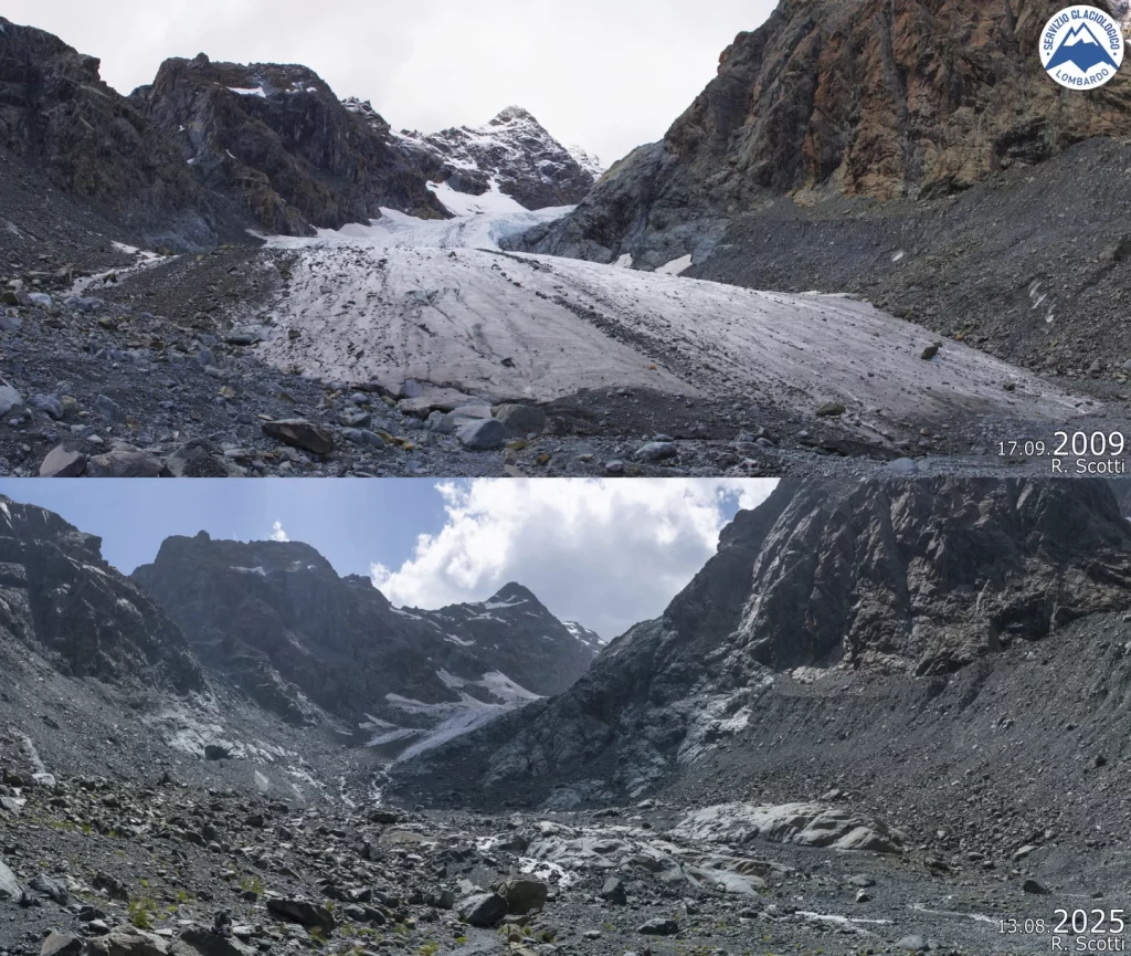 උතුරු ලොම්බාර්ඩි හි විශාලතම ග්ලැසියරයක් වන ඉතාලියේ “වෙන්ටිනා” ග්ලැසියරය දේශගුණික විපර්යාස හේතුවෙන් බොහෝ සෙයින් දියවී ගොස් ඇති අතර, භූ විද්යාඥයින්ට පසුගිය වසර 130 තුළ ඔවුන් කළ ආකාරයට එය තවදුරටත් මැනිය නොහැකි තත්ත්වයකට පත්ව තිබෙනවා.