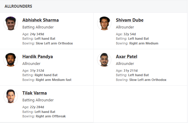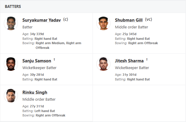 ඒ අනුව අක්ෂාර් පටෙල් වෙනුවට උප නායකයා ලෙස ශුබ්මන් ගිල් යළි කණ්ඩායමට එක්කර තිබීම විශේෂත්වයක්.