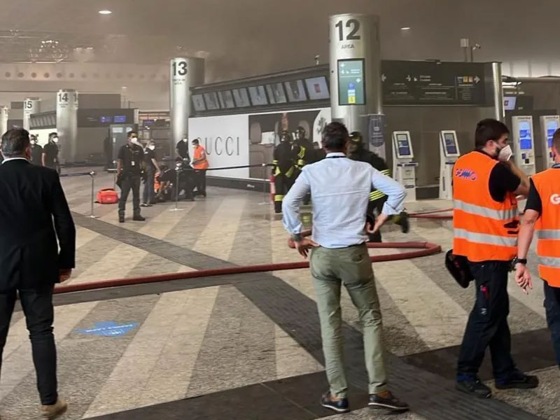ඉතාලියේ කාර්යබහුල ගුවන් තොටුපළක, චෙක්-ඉන් ප්රදේශයකට පුද්ගලයෙකු ගිනි තැබීමෙන් පසු, එහි සිටි පුද්ගලයින් අර්ධ වශයෙන් ඉවත් කිරීමට කටයුතු කර තිබුණා.