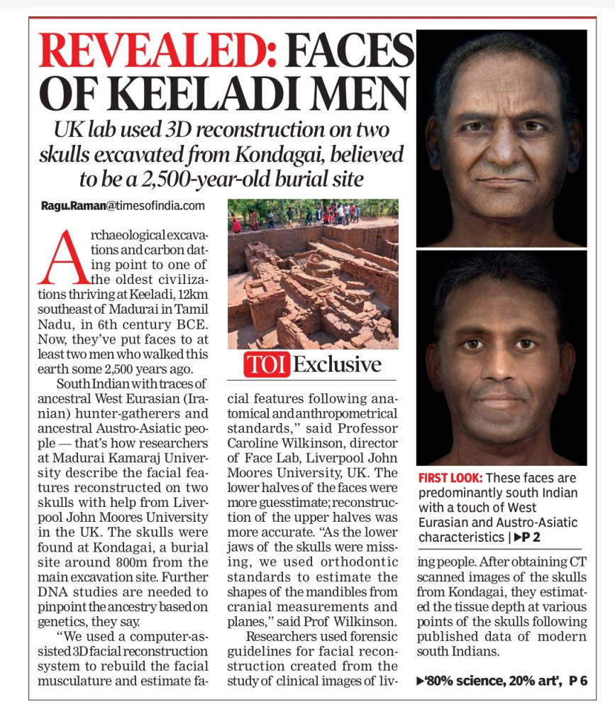 ඉන්දියාවේ, තමිල්නාඩු ප්‍රාන්තයේ කොණ්ඩගයි ආශ්‍රිත කැණීම් වලින් සොයාගත් පැරණි මානව ශිෂ්ටාචාර නටබුන් ඇසුරෙන් මිනිස් හිසක් ඩිජිටල් ප්‍රතිනිර්මාණය කර තිබෙනවා.