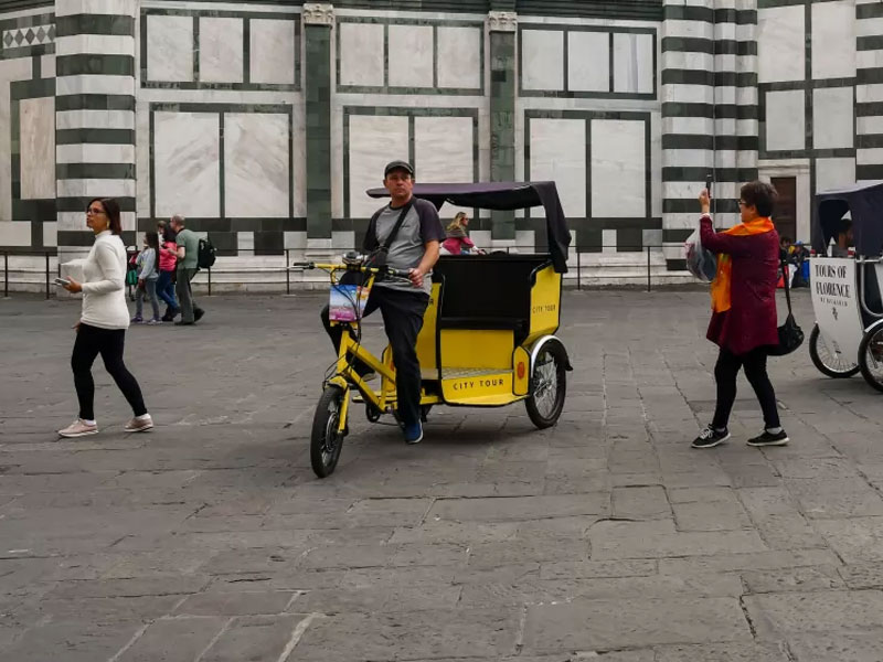 නව නීති හඳුන්වා දීම ගැන ෆ්ලෝරන්ස්හි රික්ෂෝ සහ ගොල්ෆ් කරත්ත රියදුරන්ගේ විරෝධයක්