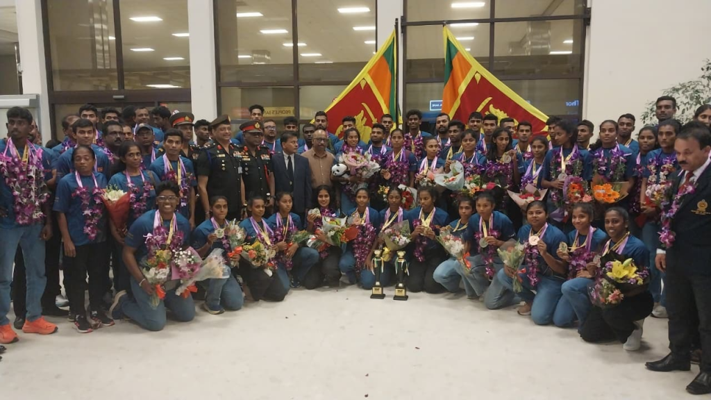 ශ්රී ලංකා ක්රීඩක ක්රීඩිකාවන් අද (28) අලුයම 02.10ට ඉන්දියාවේ චෙන්නායි නුවර සිට ඉන්ඩිගෝ ගුවන් සේවයේ 6 ඊ. – 1171 දරණ ගුවන් යානයෙන් කටුනායක ගුවන් තොටුපොළ වෙත පැමිණියේය.