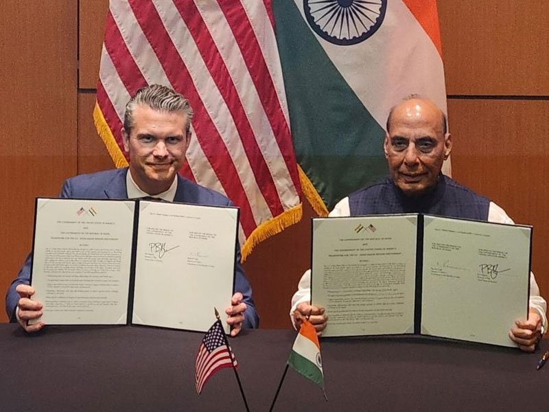 ඉන්දීය ආරක්ෂක අමාත්‍ය රාජ් නාත් සිං සහ ඇමෙරිකා ආරක්ෂක ලේකම් පීට් හෙග්සෙත් අතර ගිවිසුම අත්සන් කෙරුණේ ක්වාලාලාම්පූර් නුවරදීයි.