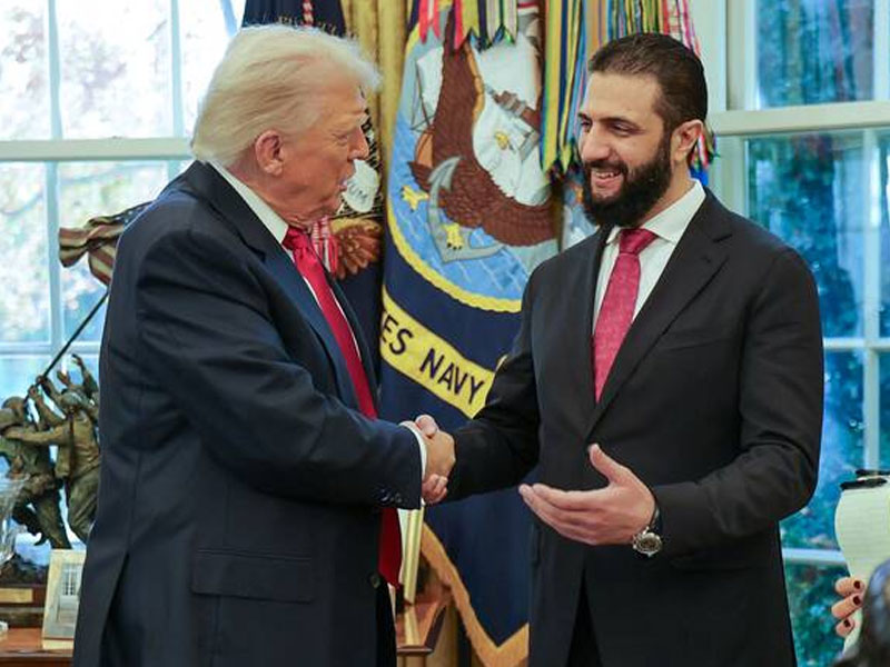 ධවල මන්දිරයට ආ සිරියානු ජනාධිපතිවරයාට ට්රම්ප්ගෙන් හිමිවූයේ උණුසුම් පිළිගැනීමකි. ට්රම්ප් සහ අල් ෂාරා මුහුණට මුහුණ හමුවුණු තෙවැනි අවස්ථාව මෙයයි.