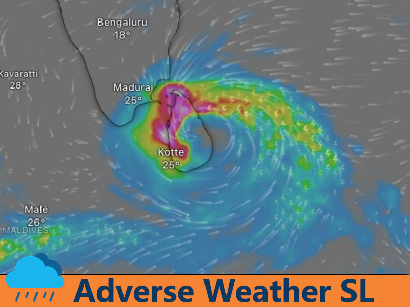 දිට්වා (Ditwah) සුළිකුණාටුව ත්රිකුණාමලය සිට 70 km ක් වයඹ දෙසින් කේන්ද්රගතව වී ඇති බව නවතම කාලගුණ නිවේදනයෙන් පැවසෙයි.