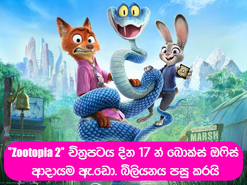 පසුගිය නොවැම්බර් මස අවසන් සතියේ සිට ලොව පුරා තිරගත කිරීම් ආරම්භ වූ “Zootopia 2” ඇමරිකානු ඇනිමේෂන් චිත්රපටය, මේ වන විට ලොව පුරා ප්රදර්ශනයෙන් ලැබු බොක්ස් ඔෆිස් ආදායම ඇමරිකානු ඩොලර් බිලියනයේ සීමාව ඉක්මවා යාමට සමත්ව තිබෙනවා.