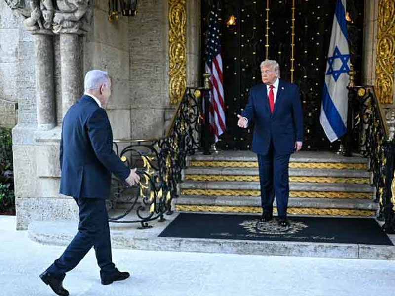 ඒ අමෙරිකාවේ ෆ්ලොරීඩා ජනපදයේ පිහිටි සිය මන්දිරයේ දී ඊශ්රායල අග්රාමාත්යවරයා හමුවීමෙන් පසු මාධ්යවේදීන් අමතමිනි.