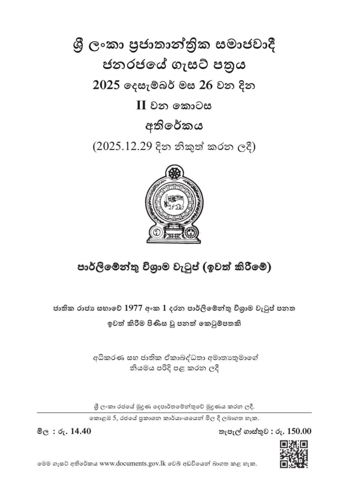 අදාළ ගැසට් නිවේදනය පහතින්…