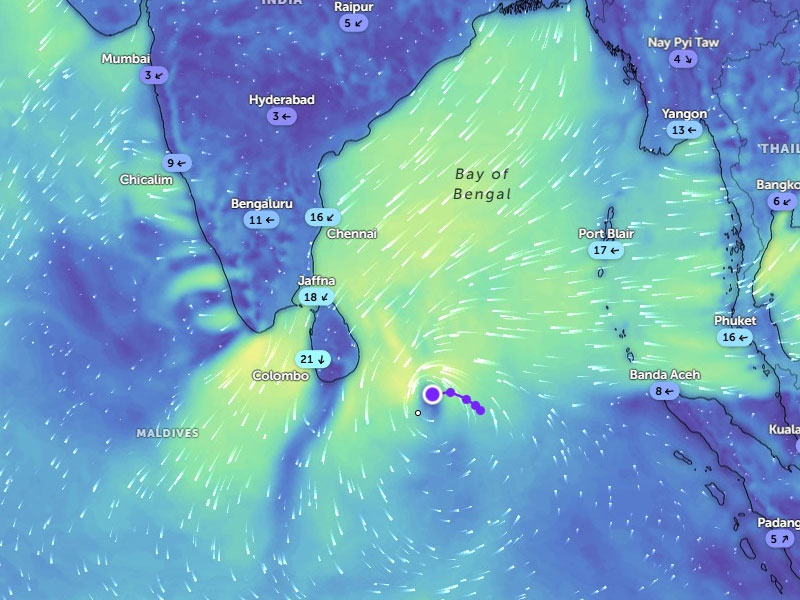කාලගුණ විද්යා දෙපාර්තමේන්තුවට අනුව, ශ්රී ලංකාවට ගිනිකොන දෙසින් පිහිටි බෙංගාල බොක්ක ආශ්රිත පීඩන අවපාතය ඊයේ රාත්රී 11:30 ට පොතුවිල් සිට කිලෝමීටර් 490 ක් පමණ ගිනිකොන දෙසින් කේන්ද්රගත වී ඇති අතර ඉදිරි පැය 24 තුළ බටහිර-වයඹ දෙසට සහ දිවයිනේ නැගෙනහිර වෙරළ දෙසට ගමන් කරනු ඇතැයි අපේක්ෂා කෙරේ. මෙම පද්ධතිය ඉදිරි පැය 12 තුළ ගැඹුරු පීඩන අවපාතයක් දක්වා තවදුරටත් තීව්ර වීමට ඉඩ ඇත.