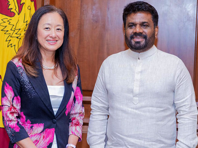 ශ්‍රී ලංකාවේ අමෙරිකා එක්සත් ජනපද තානාපති ලෙස සිදු කළ සිය රාජ්‍යතාන්ත්‍රික සේවය අවසන් කරමින්, ජනවාරි 16 වන දින ශ්‍රී ලංකාවෙන් පිටත්ව යාමට නියමිත ජූලි චන්ග්, ඊයේ (12) පස්වරුවේ ජනාධිපති කාර්යාලයේදී ජනාධිපති අනුර කුමාර දිසානායක හමු වී තිබේ.