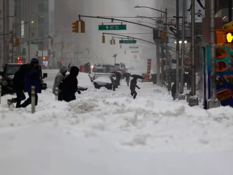 නිව්යෝර්ක් ඇතුලු ප්රධාන පෙලේ නගර රැසක් ඝන හිම තට්ටුවකින් වැසි ඇති ආකාරය විදෙස් මාධ්ය වාර්තා කර තිබේ.