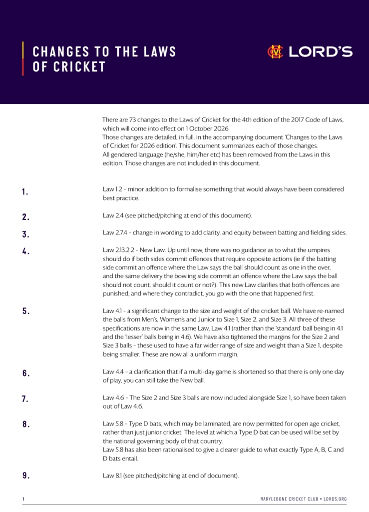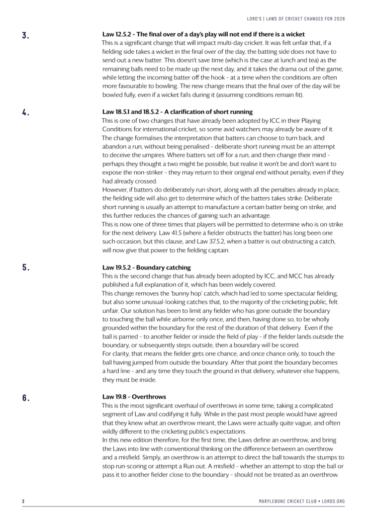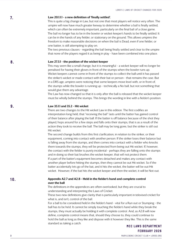 ඒ අනුව නූතන ක්රිකට් ක්රීඩාවට ගැලපෙන පරිදි සහ ක්රීඩාවේ සියලු අංශ ඇතුළත් වන පරිදි (Inclusive) මෙම 2026 නව සංස්කරණය සකස් කර ඇති බවයි MCC ආයතනය පවසන්නේ.