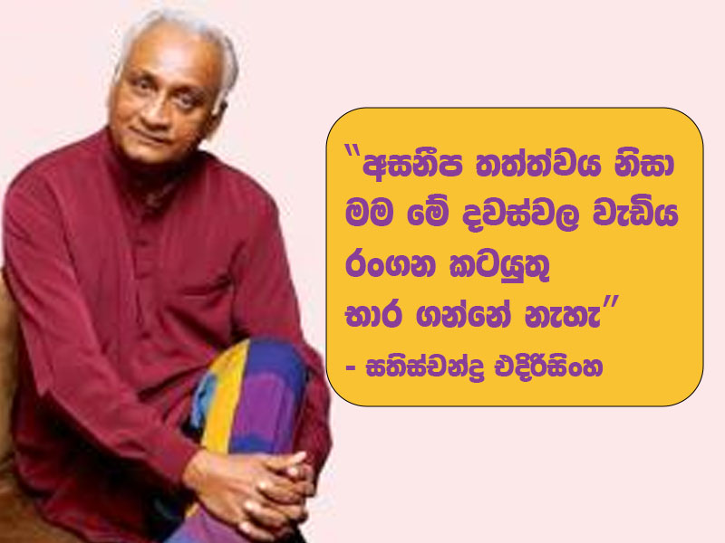 “අසනීප තත්ත්වය නිසා මම මේ දවස්වල වැඩිය රංගන කටයුතු භාර ගන්නේ නැහැ” – සතිස්චන්ද්‍ර එදිරිසිංහ