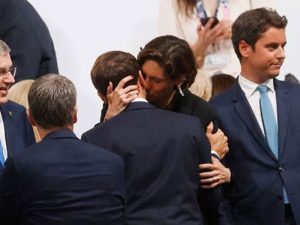 ප්රංශ ජනාධිපතිගේ “ආදරණිය හාදුව” සමාජ මාධ්ය කළඹයි