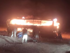 අනතුරක් නිසා බස් රථයක් ගිනි ගැනීමෙන් මගින් 71ක් පිළිස්සී මියයයි (VIDEO)