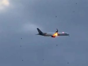 ගුවනේදී එන්ජිමක් ගිනිගත් ගුවන් යානයක් හදිසියේම ඉතාලි ගුවන් තොටුපළකට ගොඩබස්වයි (VIDEO)