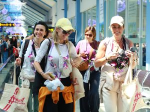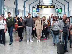 භාර්යාවන් 15 ක්, දරුවන් 30 දෙනෙකු පැමිණි කෙනෙකු නිසා ගුවන්තොටුපොළක් මොහොතකට නිරුත්තර වෙයි