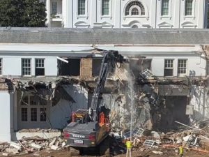 ට්රම්ප්ගේ නියෝගයෙන් ධවල මන්දිර පරිශ්රයේ කොටසක් බිමට සමතලා කරයි